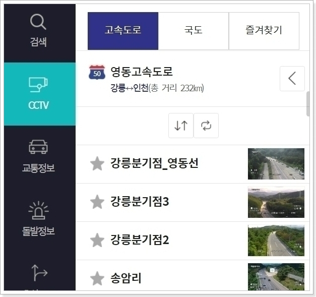 이 구간들은 사고가 없더라도 속도가 급격히 떨어지곤 했어요. 그래서 출발 전에 구간별 CCTV를 미리 보는 것이 도움이 되더라구요.