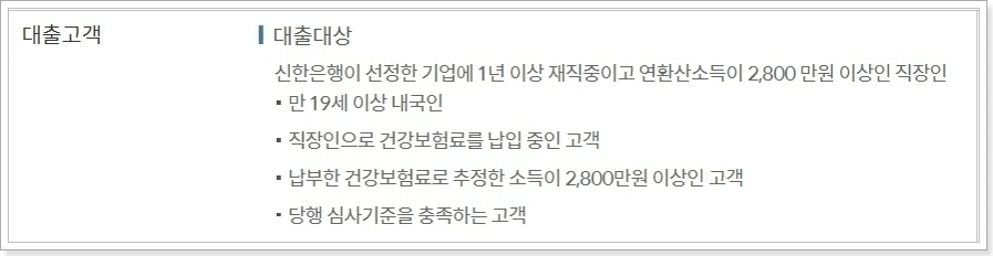 - 신한은행이 선정한 기업에 1년 이상 재직